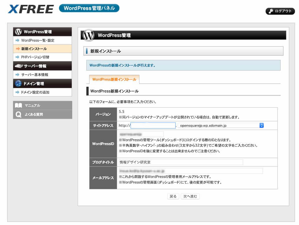- WordPressID を決めて入力