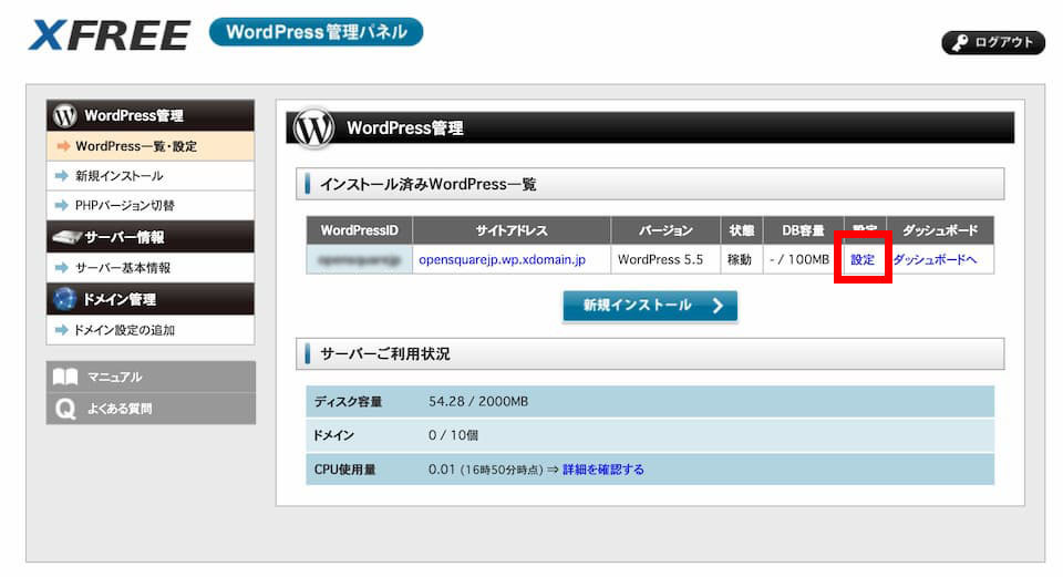 WPサーバーの利用開始
