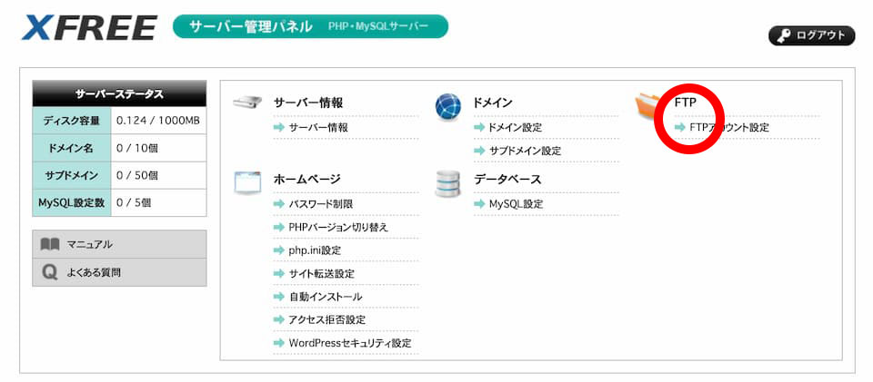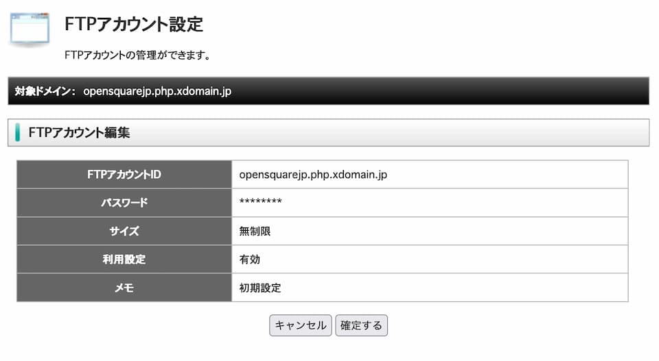 FTPアカウント設定