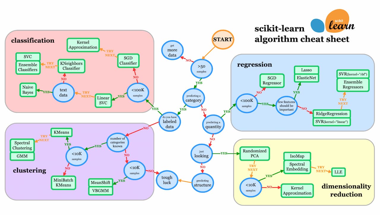 図版出典:https://scikit-learn.org/stable/machine_learning_map.html