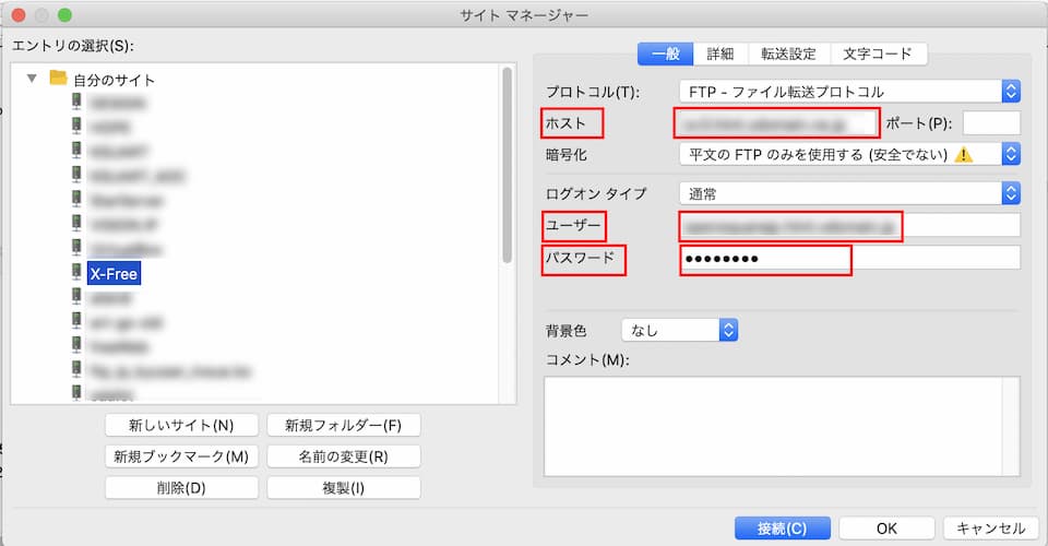 X-freeではサイトのURL文字列と同一 - FTPパスワード