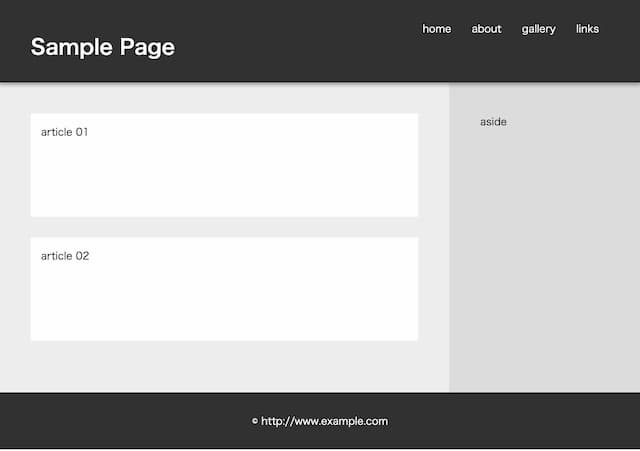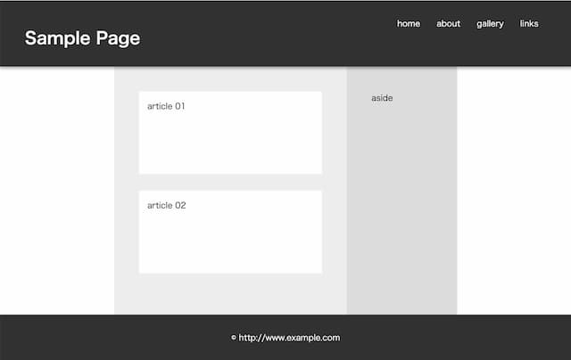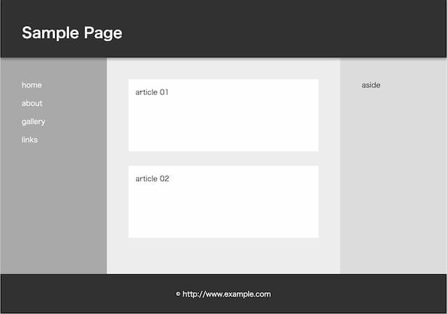 これ以下の記事は、float を使ってボックスをレイアウトする内容になっています。現実には古いPC・ブラウザで見ている方も多くいるので、以下のサンプルの方がみんなにやさしい・・のですが、これから学習する方は上記のFlexboxによるレイアウトサンプルを参考にして下さい。