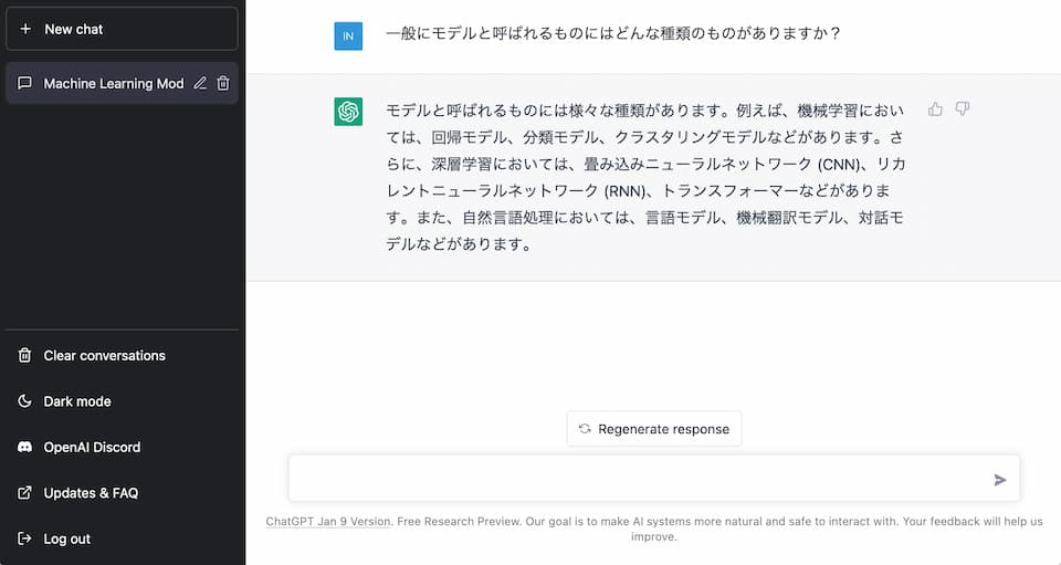 ChatGPTは 2023年1月現在、試験運用(Free Research Preview)という位置付けのようで、アカウント登録によって、無料で体験することが可能です。永遠に無料・・というわけではないようなので、ご留意ください。