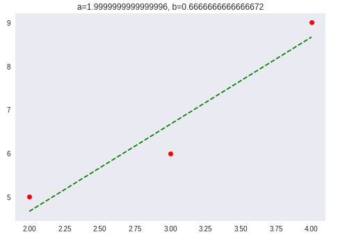 数学の問題というのは、与えられるデータの数も値も、手計算で綺麗な解が導けるように与えられますが、実際の問題では、与えられるデータは必ずしも綺麗に直線上には並びません。例えば (2,5) , (3,6) , (4,9) だったりします。