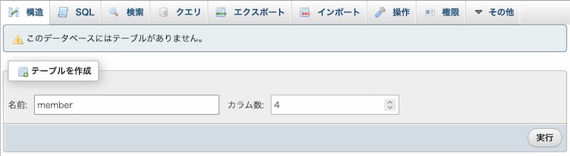 - 5) テーブル member ができました。