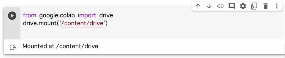 以下の記述で GoogleColab の /content/drive にMy Drive がマウントされます