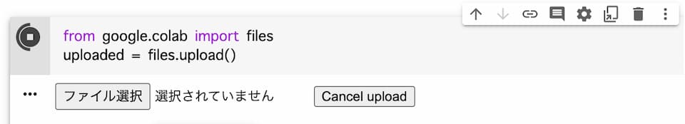 以下の記述で実行すると [ファイル選択] ダイアログが開いて Google Colab上にデータをアップロードすることができます。