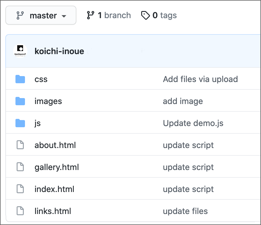 Webサーバー や GitHub にアップする場合、このフォルダの中身を位置関係(相対的な関係)を変えずに まるごとアップロードします。右図は、GitHub にWebサイト用のリポジトリを作成して、そこにファイル群をアップロードした場合のイメージです。