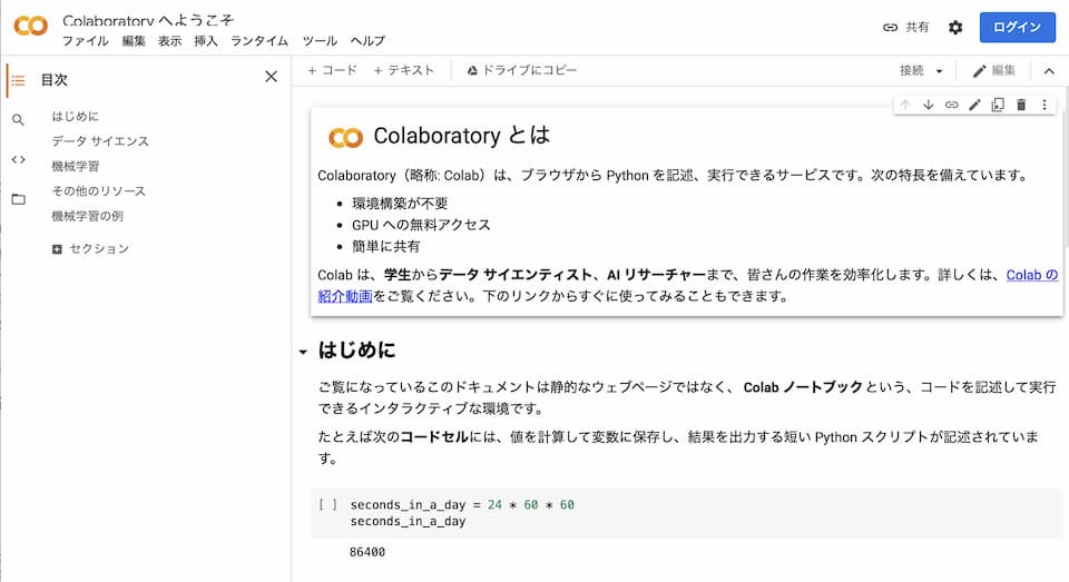 Google Colaboratory とは、Googleの仮想マシン上で動く Jupyter Notebook*1 をベースとした開発環境です。Googleアカウントがあれば、日常的に用いているブラウザから誰でも無料で利用できます。