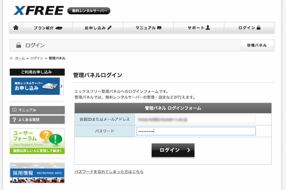 - 管理パネルにログインしてください。