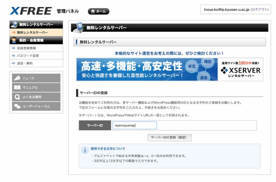 X-Free Server でのアカウント取得・サーバー開設の手順