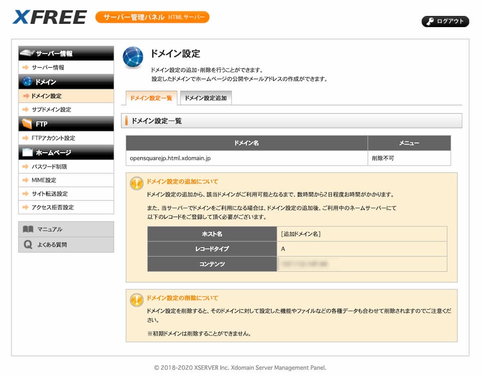 - ドメイン設定画面では、あなたのサイトのURLを確認することができます。