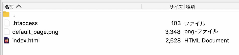 - ここに見える index.html が「このウェブベースには、まだホームページがアップロードされていません。」と記載された初期ページです。