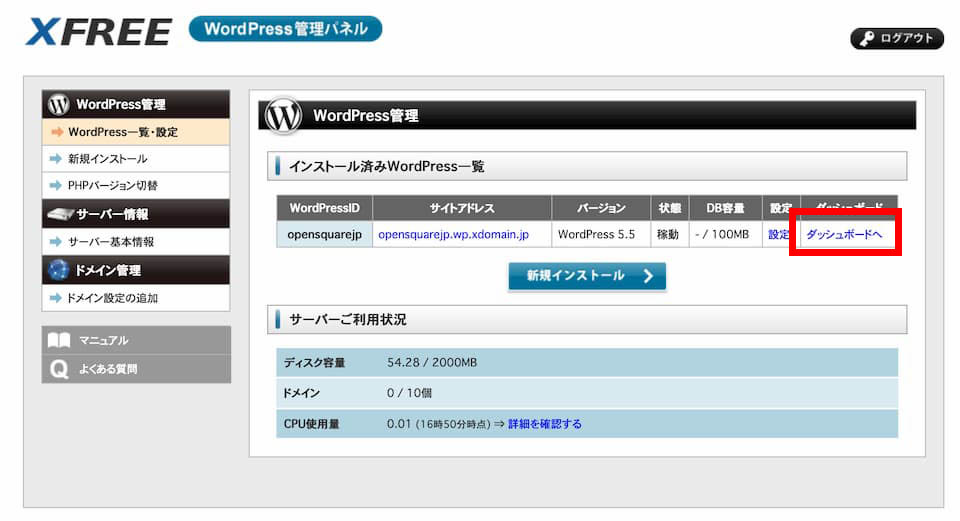 WPサーバーの利用開始