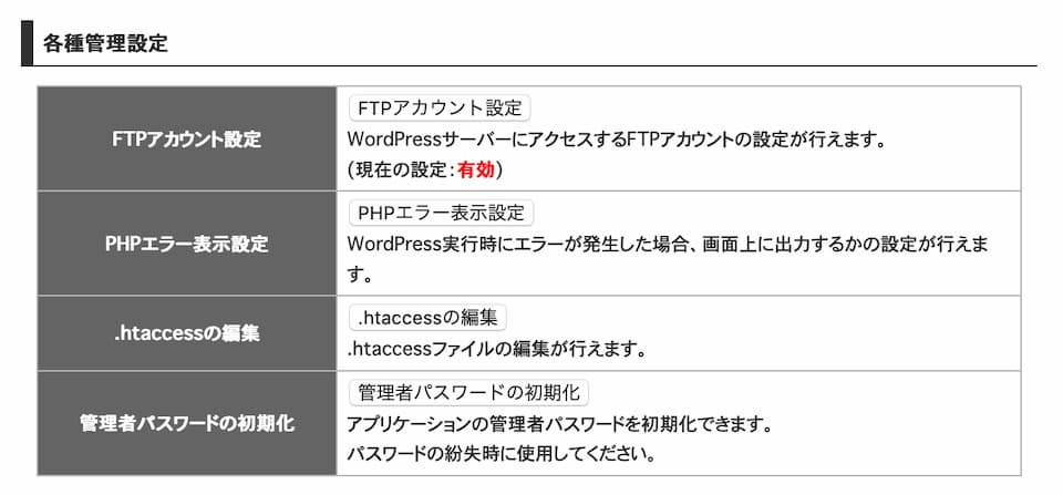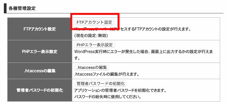 - FTPアカウント設定が「有効」になっていればOKです。