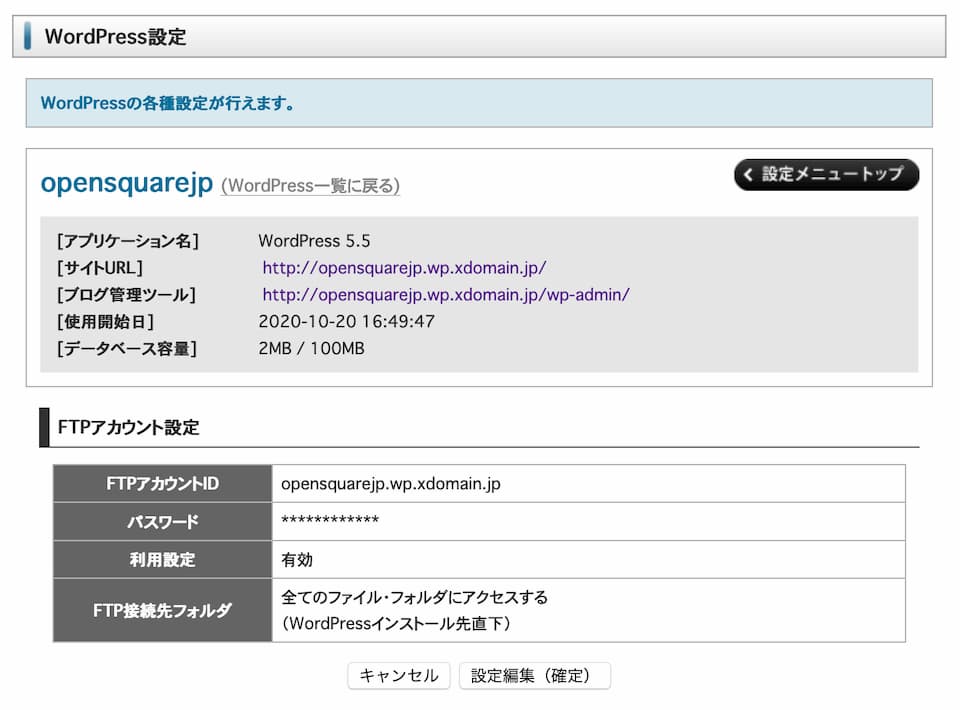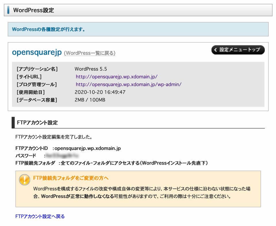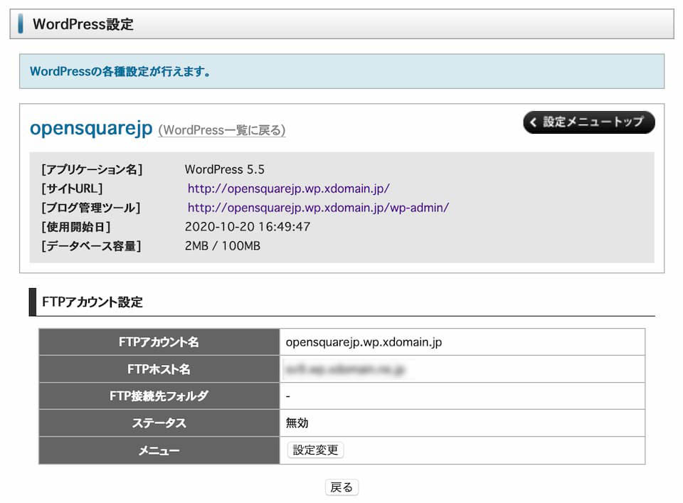 - FTPホスト名は決まっているので、これをメモしましょう。