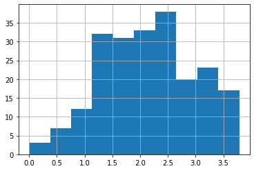df.hist( ) 全項目一挙表示 df[ 'XXX' ] .hist( ) 特定カラムの表示