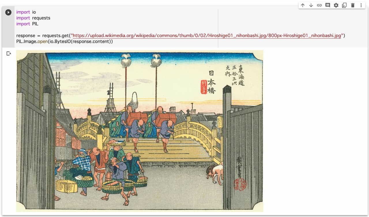 Google Colaboratory では Jupyter Notebook で利用できるライブラリーが「すべてインストール済み」という前提なので、ローカル環境での作業のように、必要なライブラリのインストールを行う必要はなく、コードセルに import 文を書くだけで使うことができます。