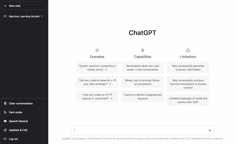 ChatGPTは 2023年1月現在、試験運用(Free Research Preview)という位置付けのようで、アカウント登録によって、無料で体験することが可能です。永遠に無料・・というわけではないようなので、ご留意ください。