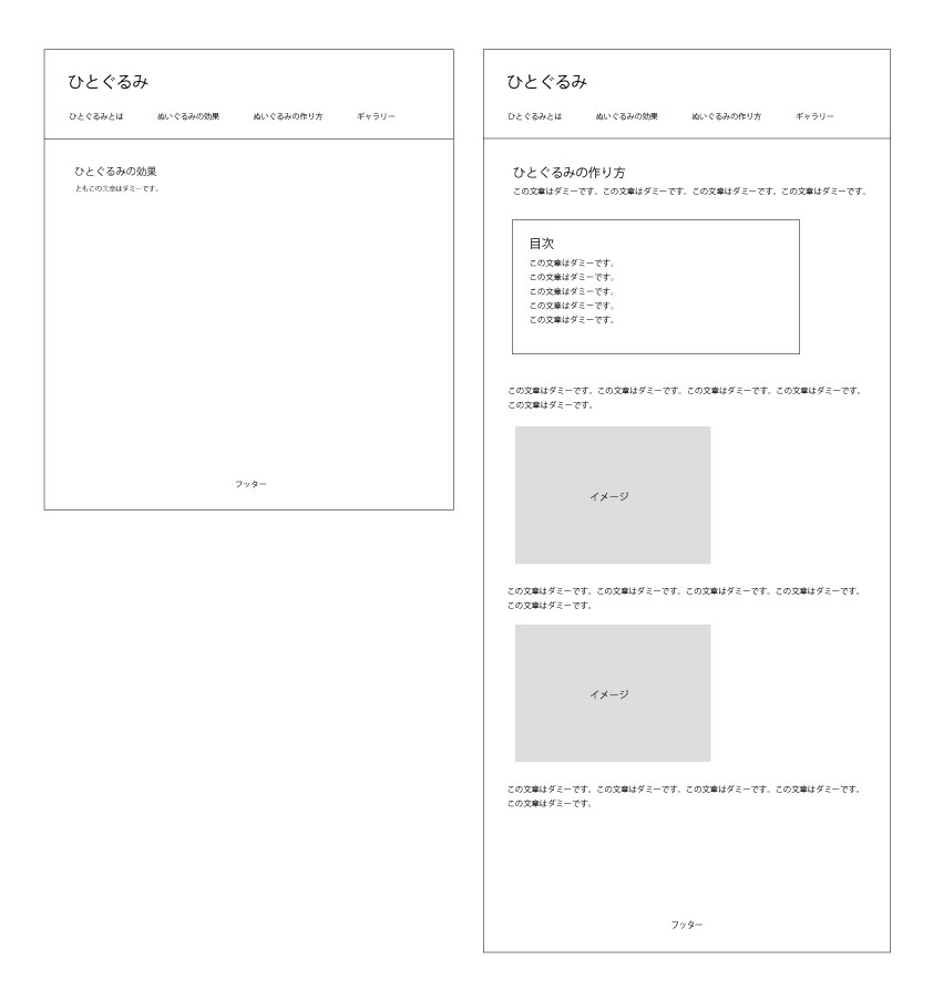 - ページを足す。そのぬいぐるみごとのサイトを作る。