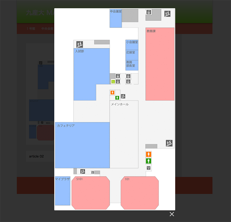 ∟mapの作成を1号館と中央会館に絞ったのはこの二つの建物が全学部学科活用率が高い為