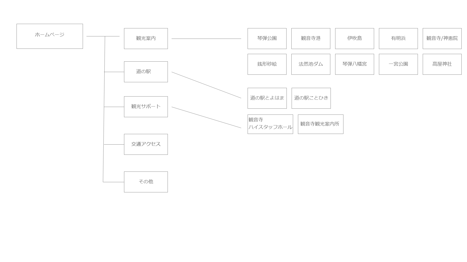 観音寺市の観光に重点を置いて観光地、道の駅、観光補助の3点に絞って作成する。