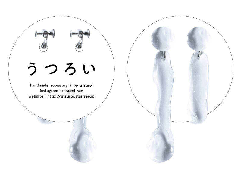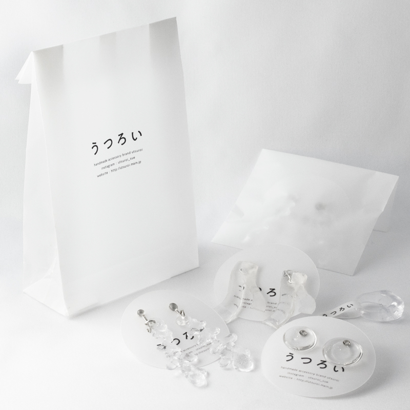 うつろいの特徴である透明感を演出するため、アクセサリーの台紙と紙袋をトレーシングペーパーで制作した。台紙は、Webサイトと同様、円形で統一した。