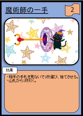 ・相手の手札を見ないで1枚選び、捨てさせる。