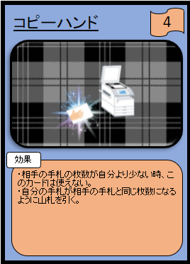 手札破壊などされて手札枚数に差が出たときの逆転要素として、ver.1.02に作られたカードです。