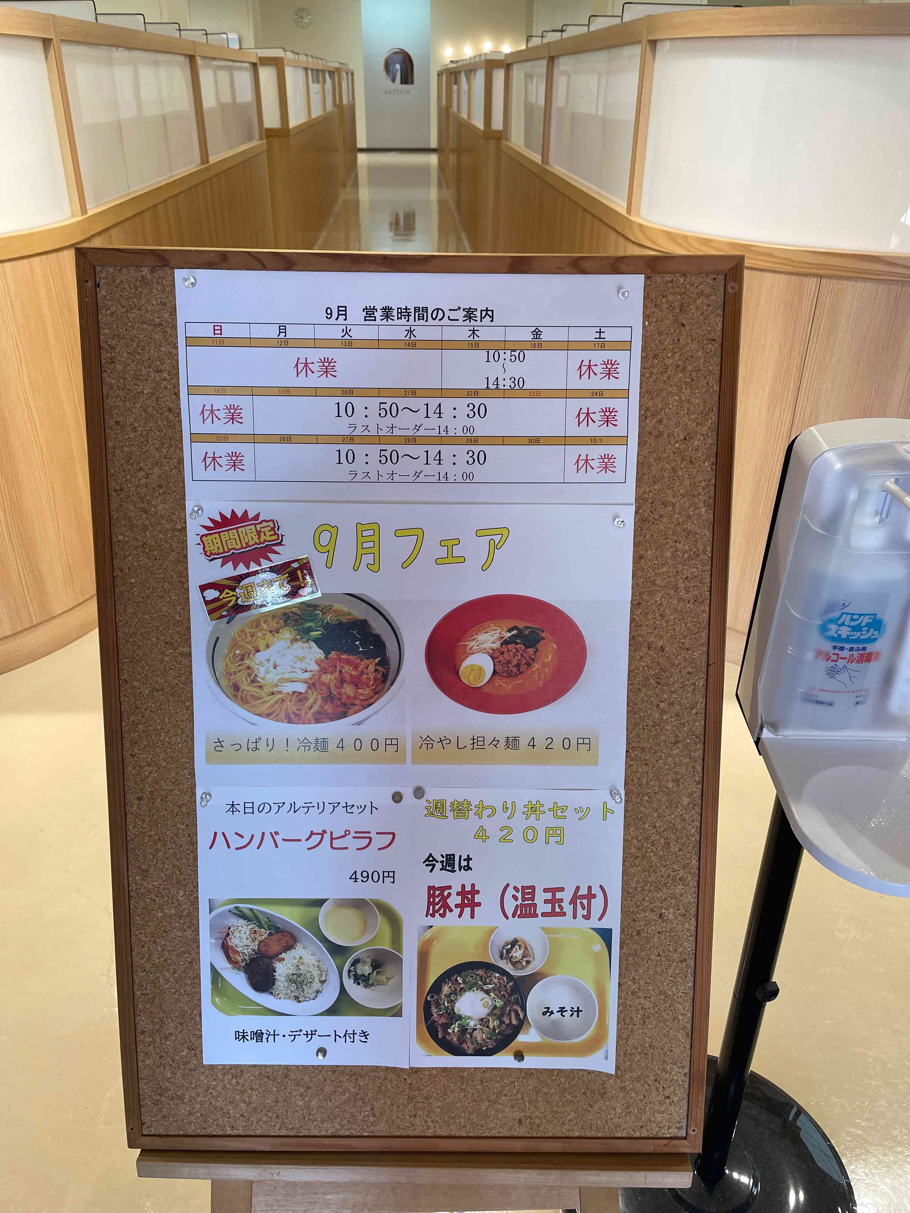 - 店内は1号館のオアシスととても似ているがオアシスはThe食堂というものに対してアルテリアはオシャレに憧れた食堂という雰囲気がある