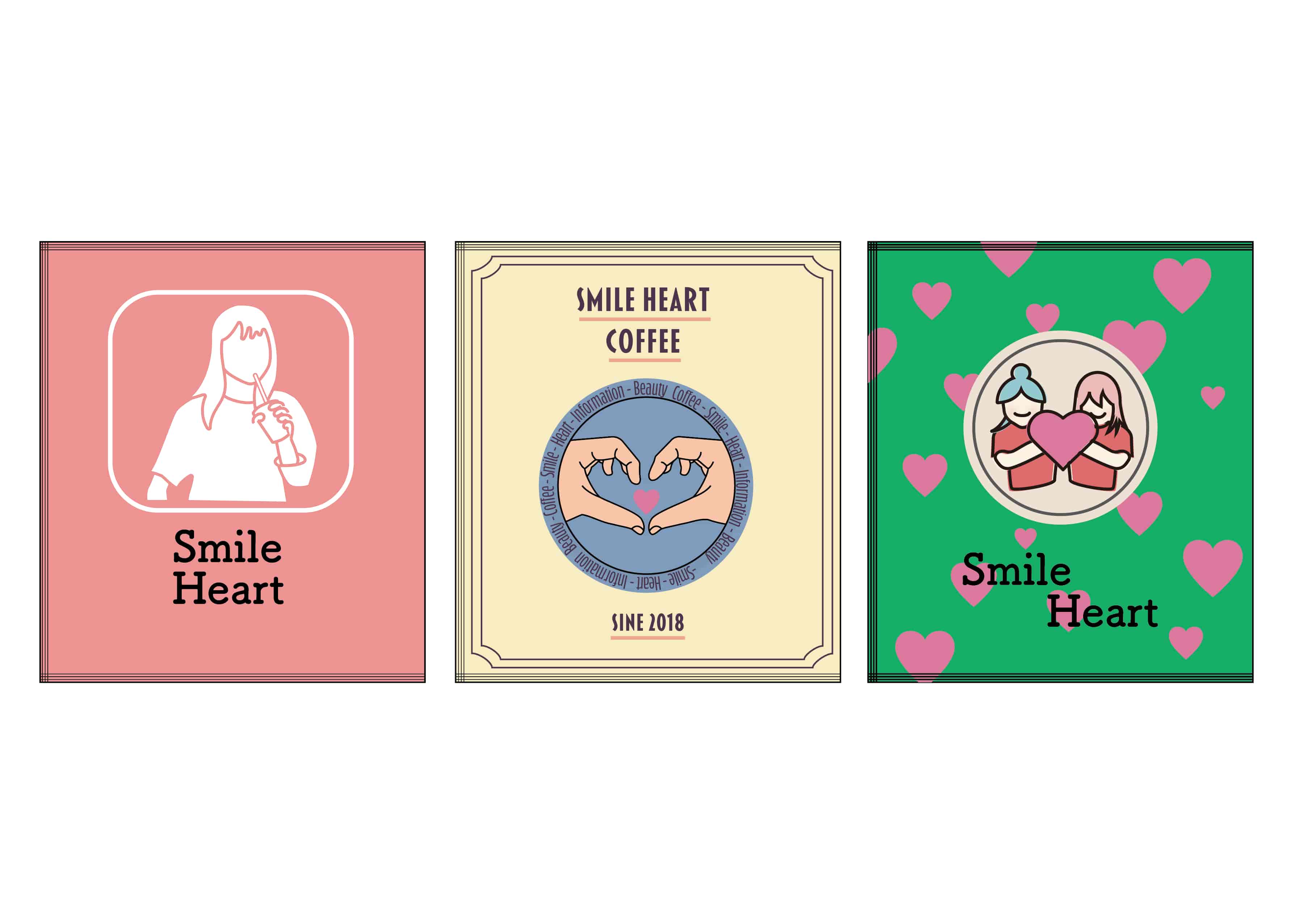 オンラインカフェ会には、毎回「10,000人のスマイルハートを集めよう」というテーマで、会の最後に参加していただいた方々と一緒に指ハートを作って、写真撮影をするという企画が行われている。そのため、パッケージデザインにも指ハートを取り入れる。