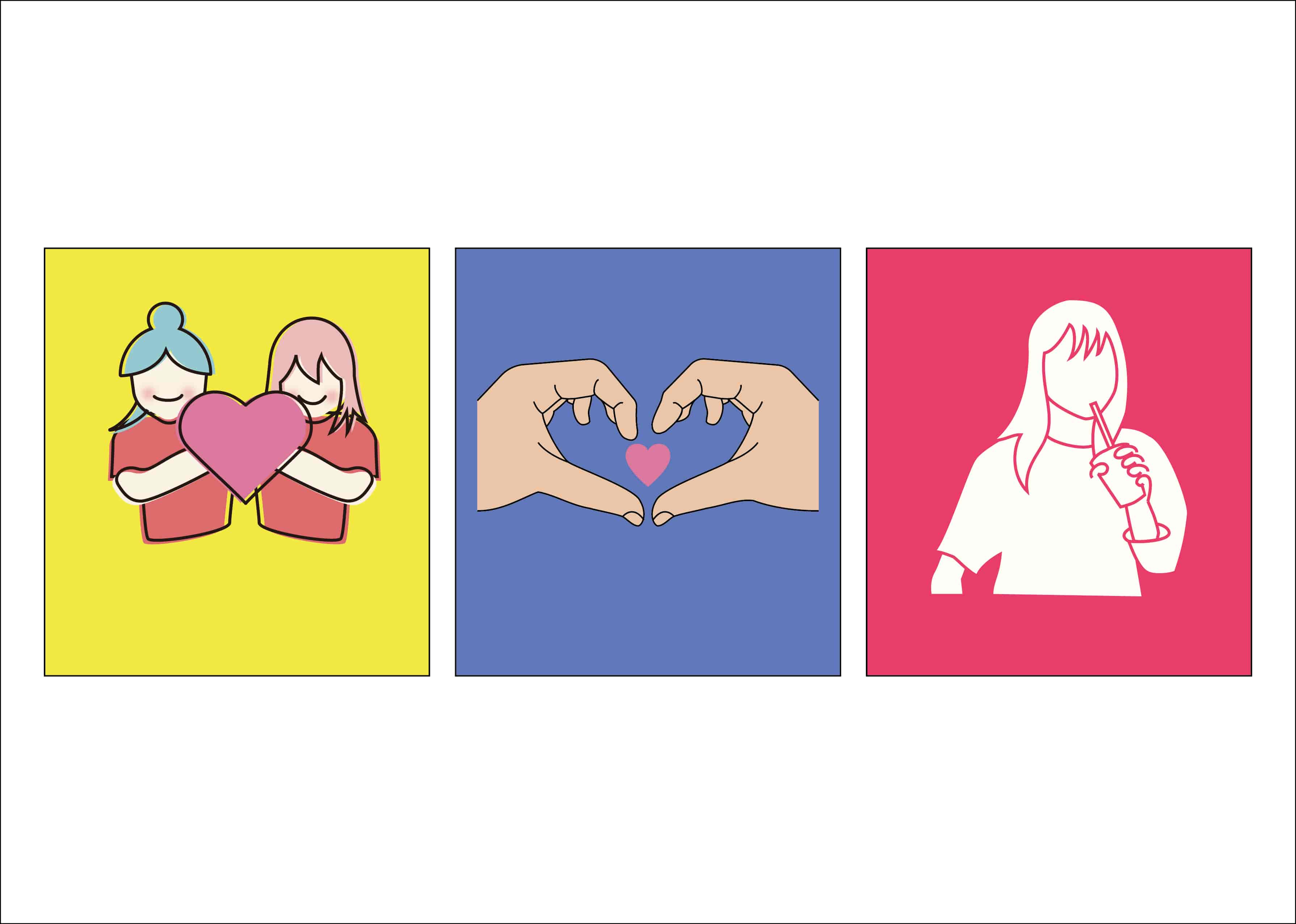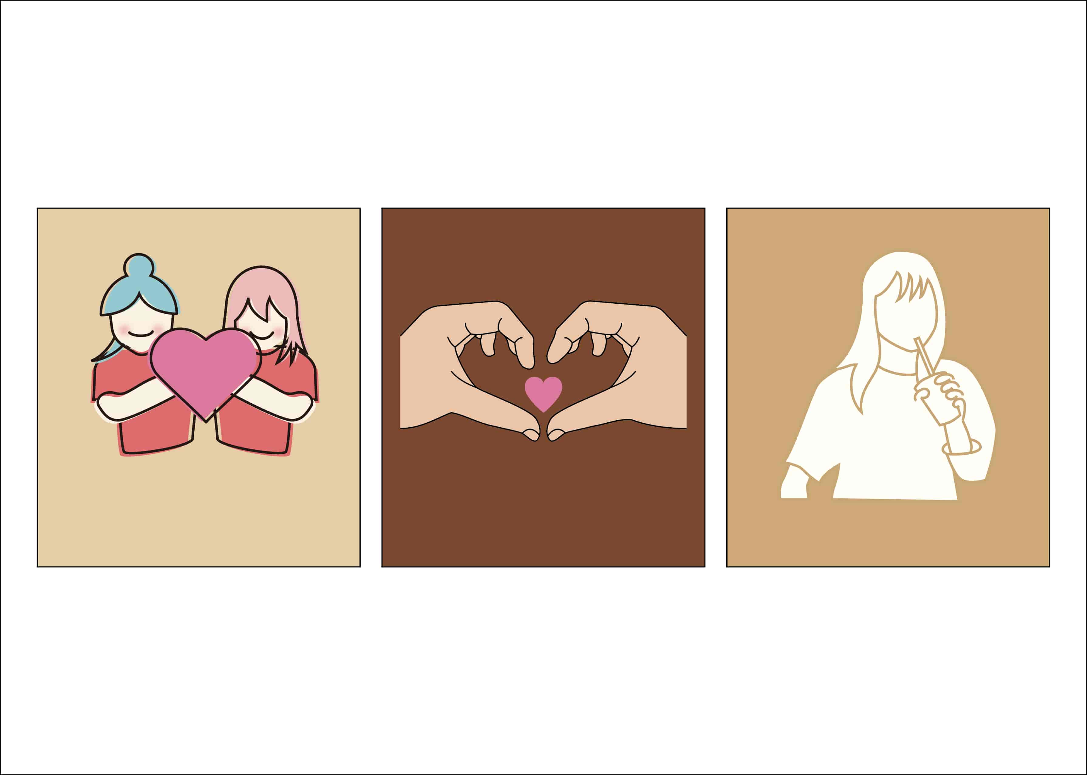 ↪︎オンラインカフェ会の最後に、「10,000人のスマイルハートを集めよう」というテーマで、指ハートを作り、写真撮影を行っているため、その指ハートを使った、デザインの種類を増やす。