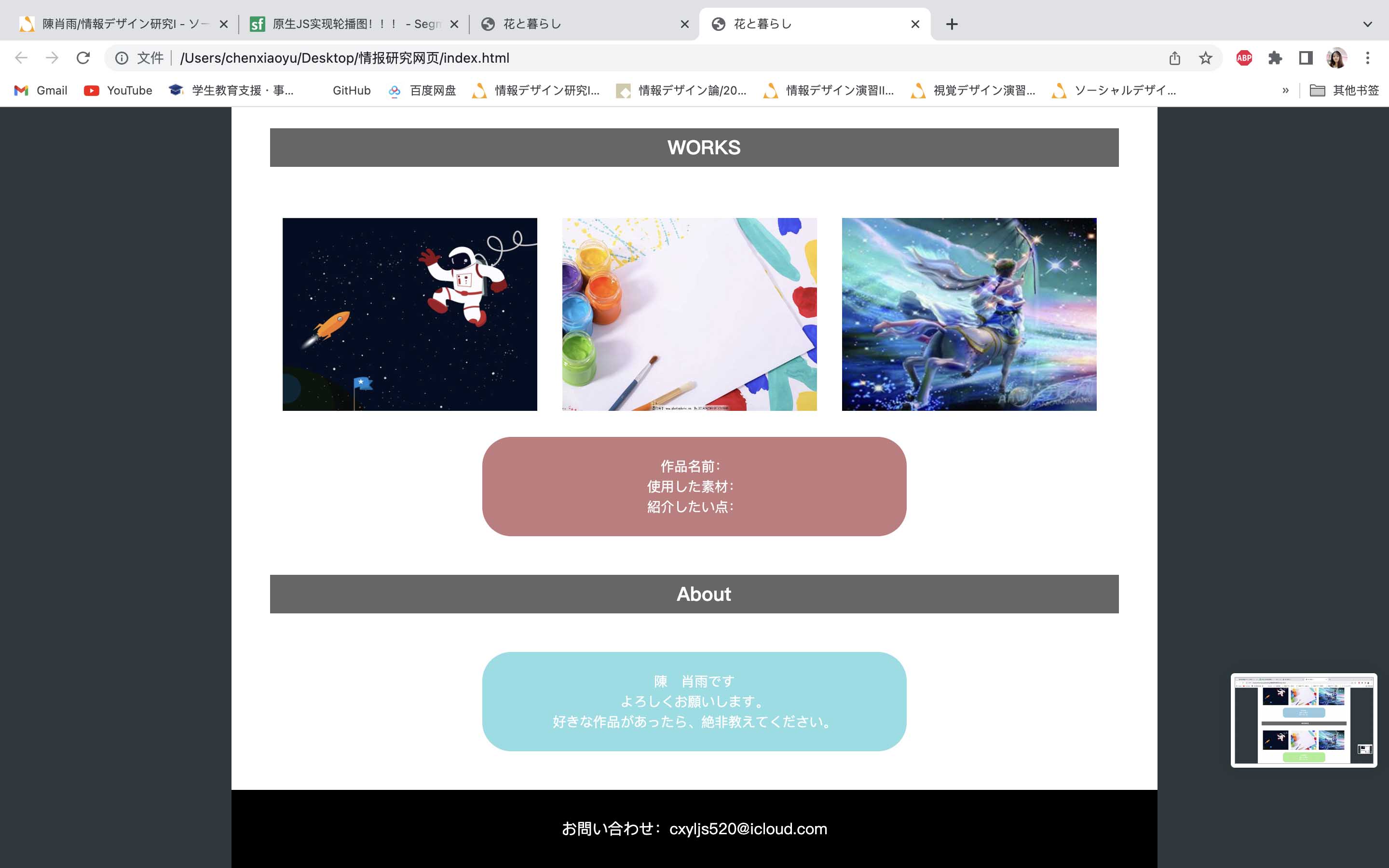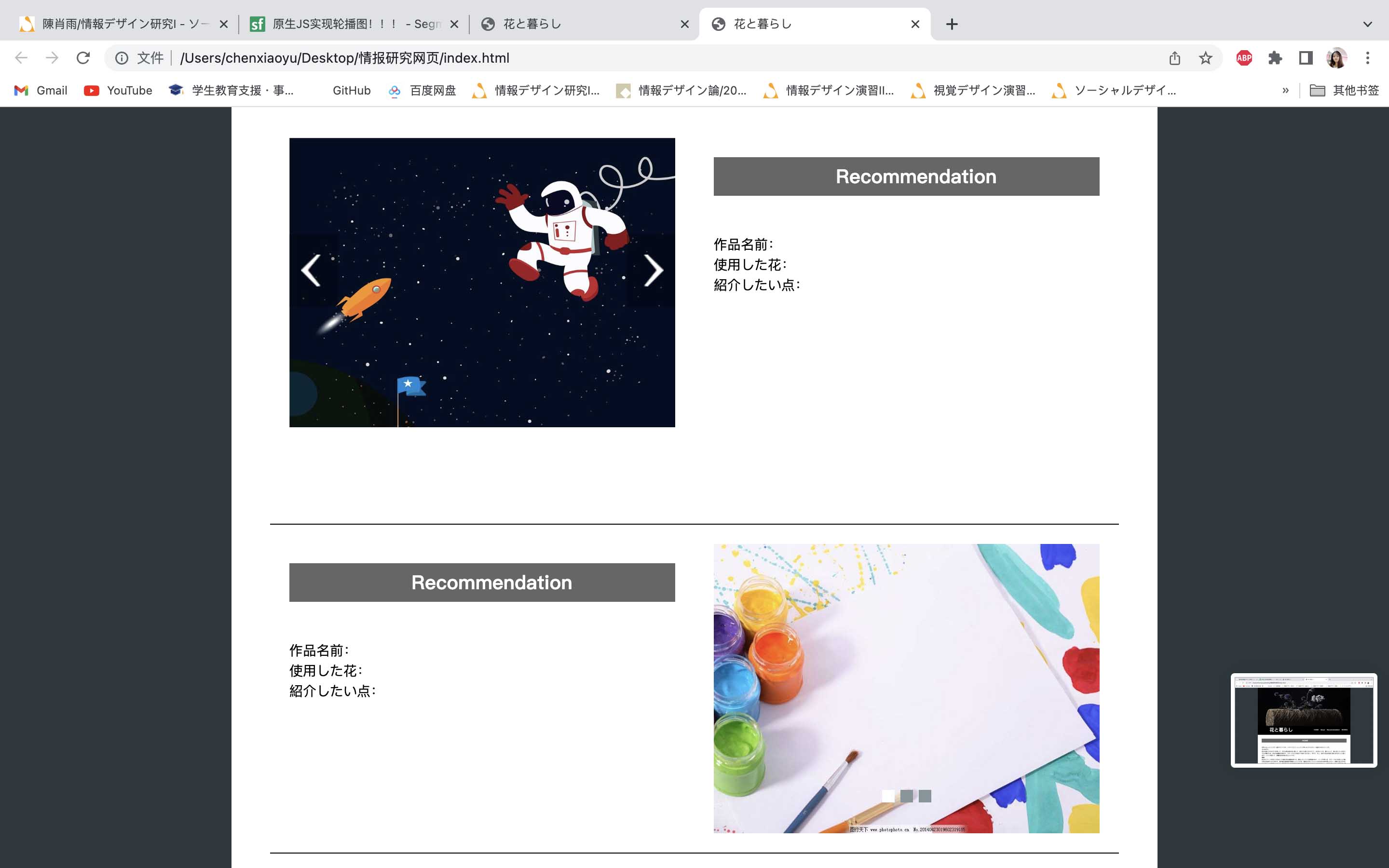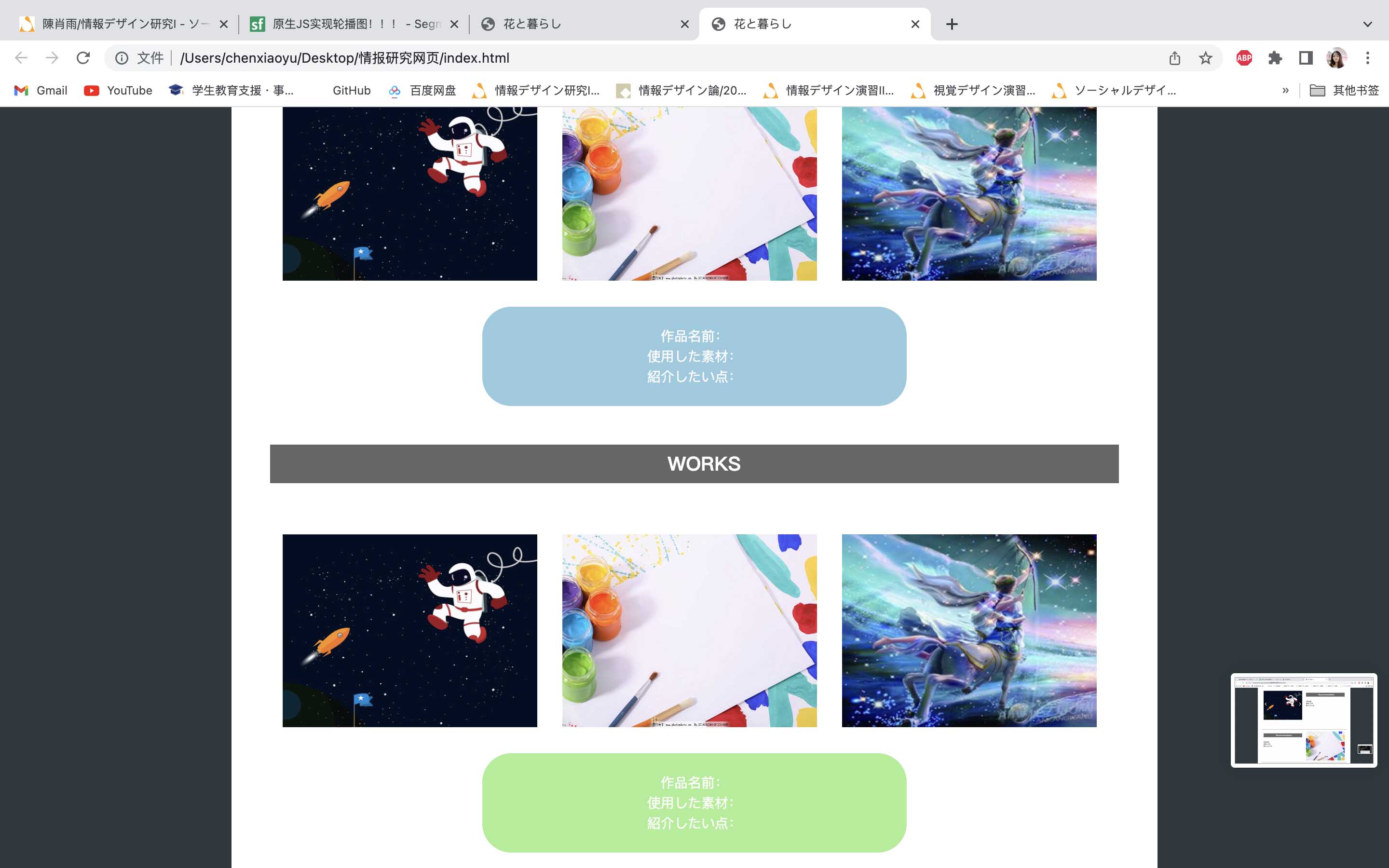 もう一つ理由はHTML、CSS、の知識まだ少ないため、webの授業を受けながら、頭にある知識を生かしていきたいです。