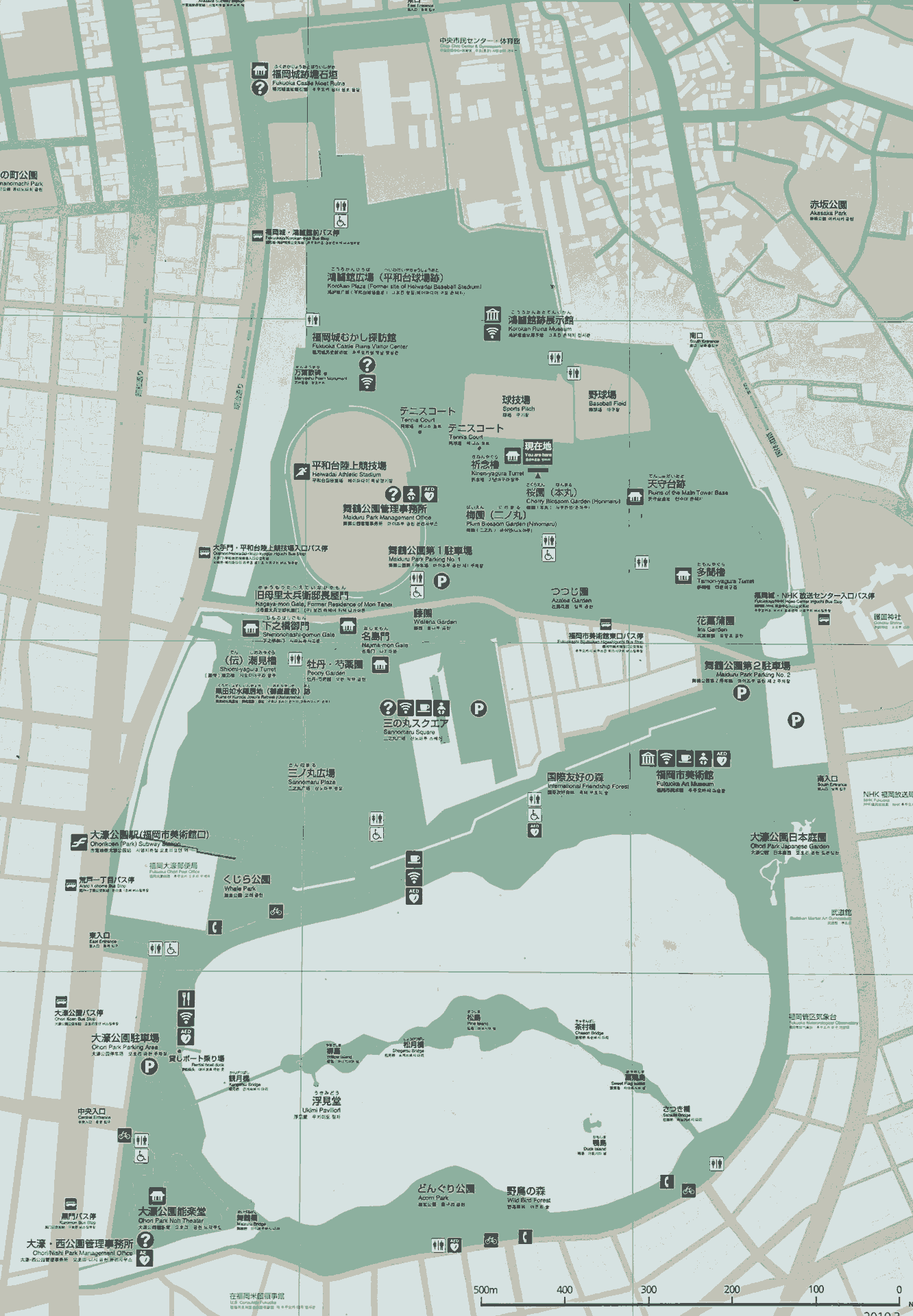 - 三の丸広場は大濠公園の一部と認識されている(現地訪問者聞き取り)