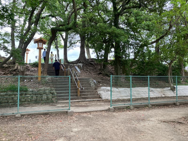 - 大濠公園駐車場からすぐ、大濠公園の遊具広場から三の丸広場へ移動できる通路があるが、柵の存在、木々が生い茂る状況、三の丸広場が数メートル上に位置することから、東側奥に広い空間があることがわからない