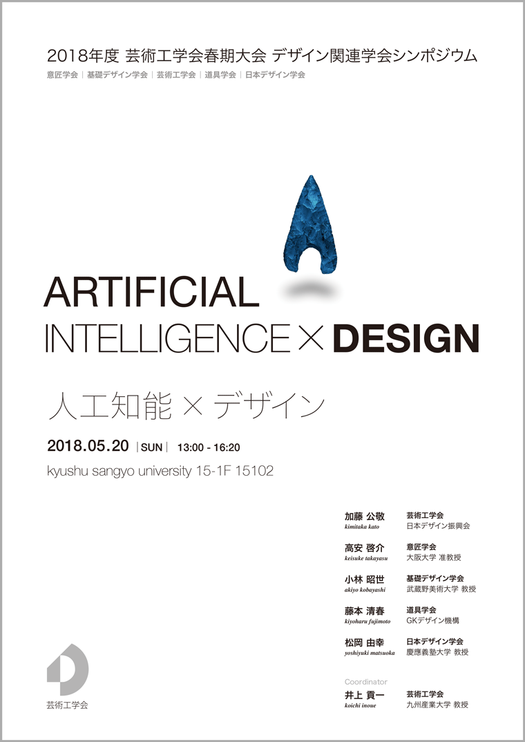 本学で開催される デザイン関連学会シンポジウム 「人工知能 x デザイン」(芸術工学会・拡大大会)について、当日の受付、会場準備等に関するアルバイト学生を募集します。関心のある方は井上(貢)にお声かけ下さい。