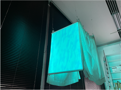 狭く暗い空間でプロジェクションマッピングを行なったことにより、最初にキーワードとして考えていた”現実逃避できる秘密基地のような空間”を演出することができた。また、落ち着いた空間の中にインタラクティブな要素を取り入れることで心地よい刺激が生まれ、より不安や日々の悩みを忘れて過ごすことのできる空間にすることができるということが分かった。