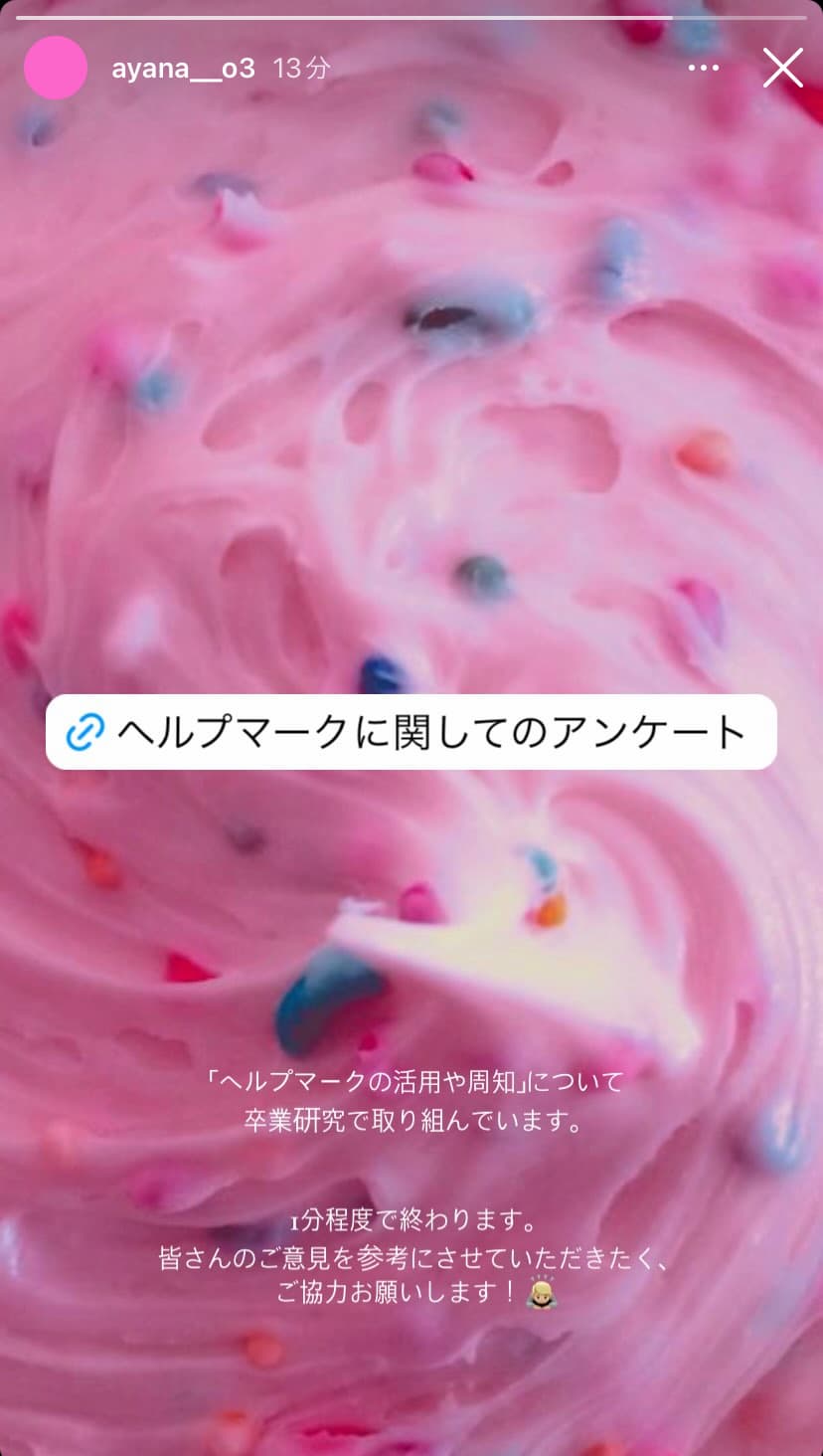 アンケート対象者を増やすために、ソーシャルデザイン学科だけに留まらず、自身のインスタグラムでも行う。