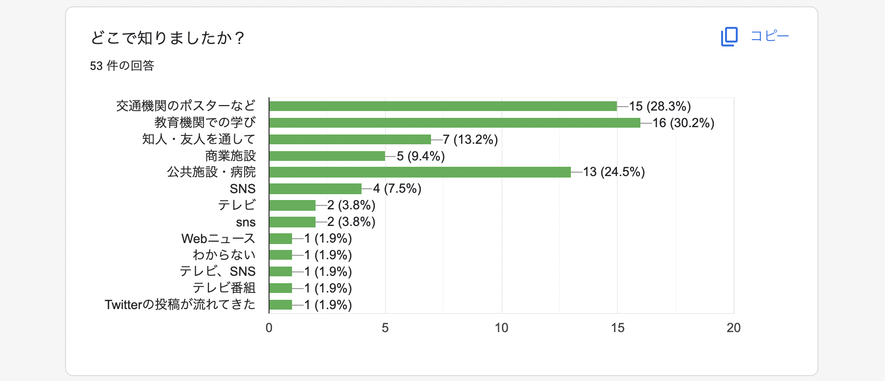 また、認知した場所もバラバラで個人的に偶然気づいた人が多い印象を受けた。
