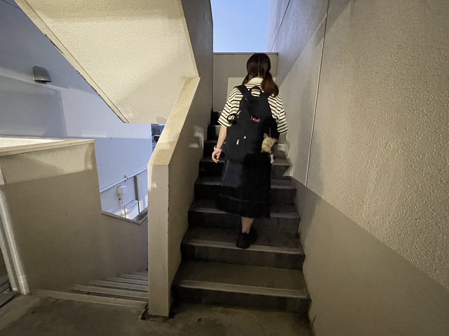 また、外階段は、非常に狭い。登っている人と降りている人が鉢合わせた時、どちらかが止まるか、踊り場などの開けたところまで戻らなければならない。