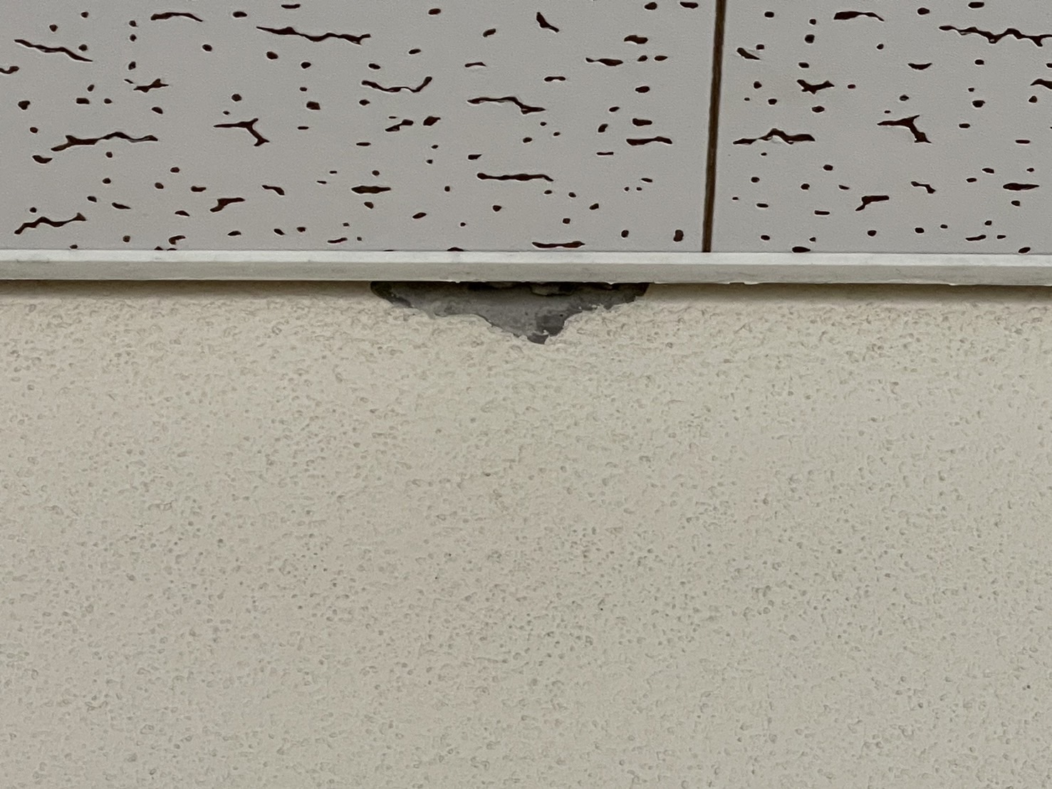 学友棟の通路の天井には、監視カメラや非常口の標識、パイプなどが天井からぶら下がっている。学文祭で大きなものを運ぶ時、上からぶら下がっているものに当たってしまったことがあり、非常に危険だと思った。