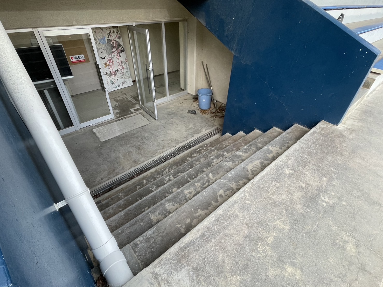 それに、グラウンド側の階段は、砂によって滑りやすくなっている。階段が急でもあるため、一番事故が起きやすい場所だと思う。