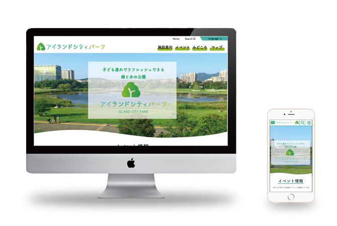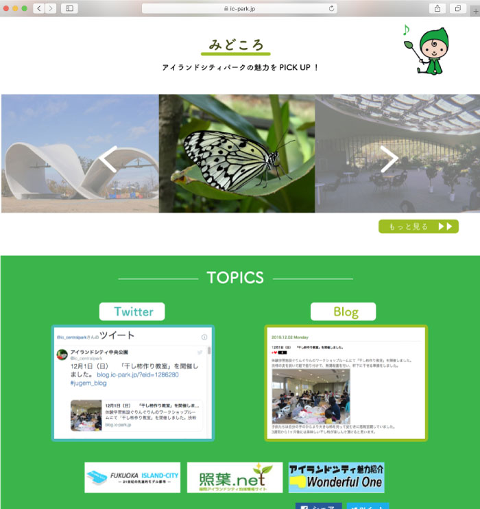 香椎浜アイランドシティ中央公園のヴィジュアル・アイデンティティ計画 制作物(プレゼンボード)A3 ① シンボルマーク+ロゴタイプ ② 名刺 ③ +α ・パンフレット ・ポスター ・WEBサイト など