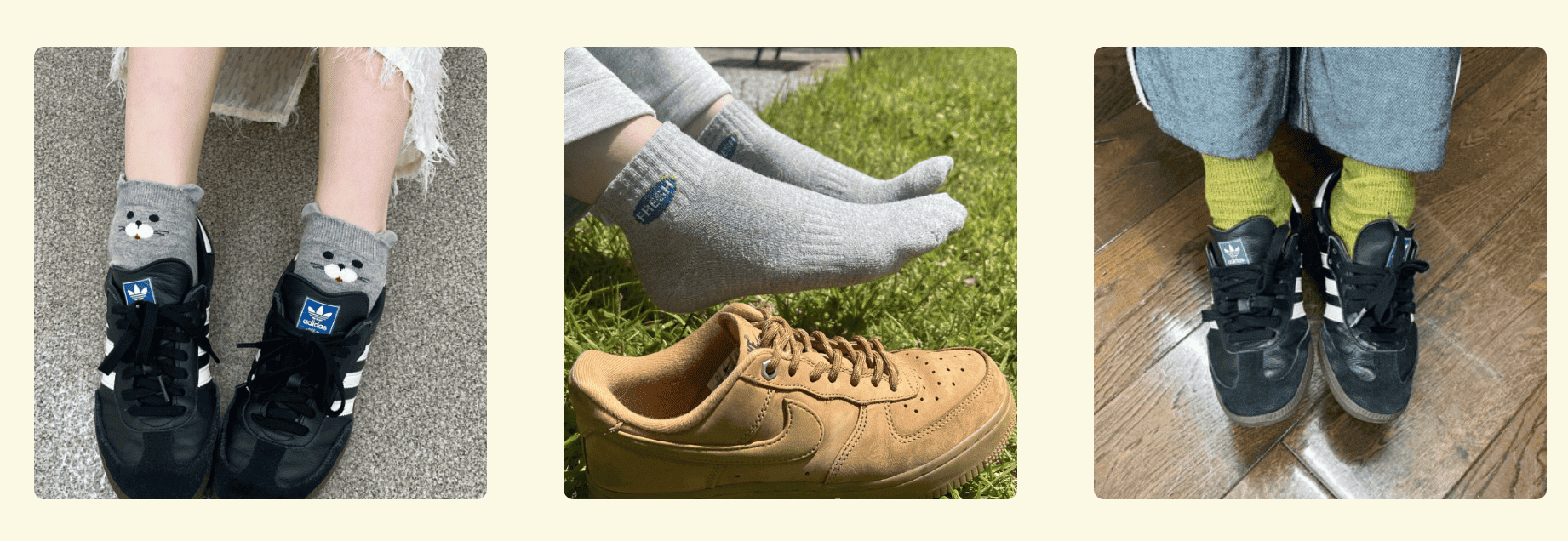 また、靴下の表記をひらがなにすることでやわらかく、親しみやすい雰囲気作りになっている。