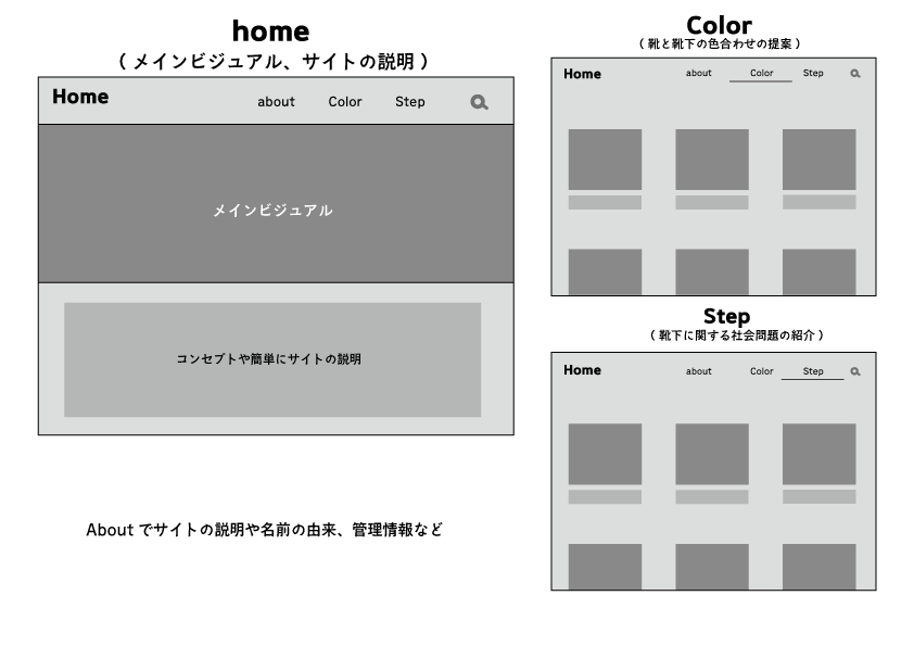 - 前期、後期を通じてこのサイト制作を行ってきて実際に周囲の人間や学内、街中の人の靴下事情について深く知ることができ、サイトの内容充実に繋がったと感じている。