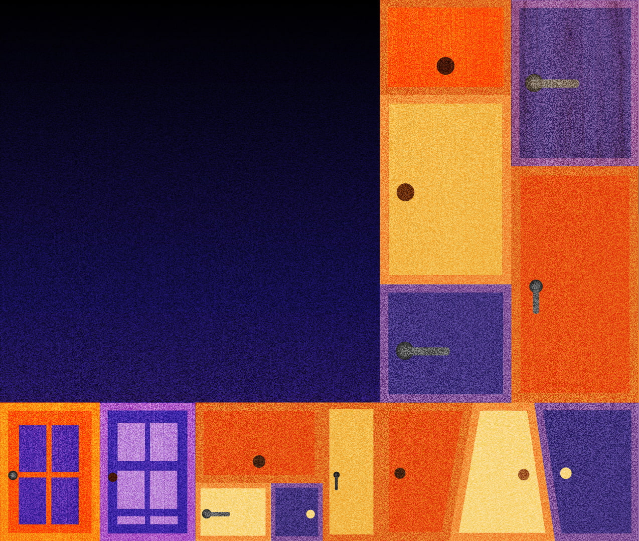 - 部屋が切り替わる時にこの洋館も対応するアニメーションをつける