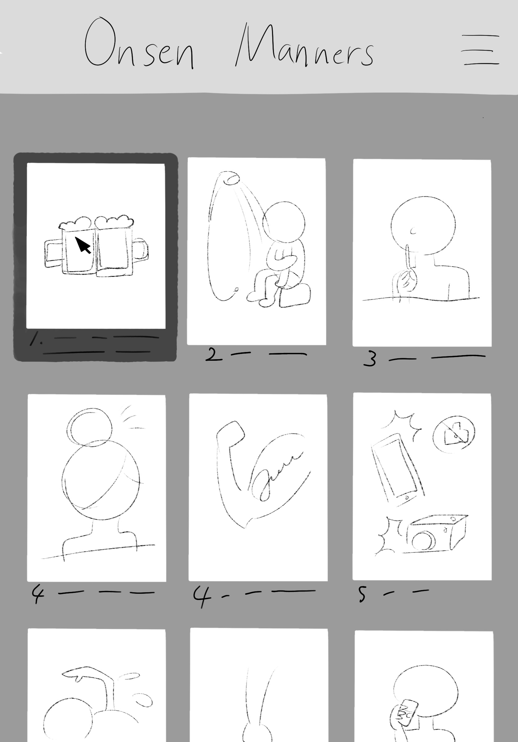 温泉マナーに焦点を当て、ポップなデザインと3DCGを活用したWebサイトを制作することを目指した。サイトでは、ユーザーが楽しみながら自然とマナーを理解できるよう、インタラクティブな仕組みや直感的な表現を取り入れている。今後は、3DCGでの制作を本格化していきたいと思う。