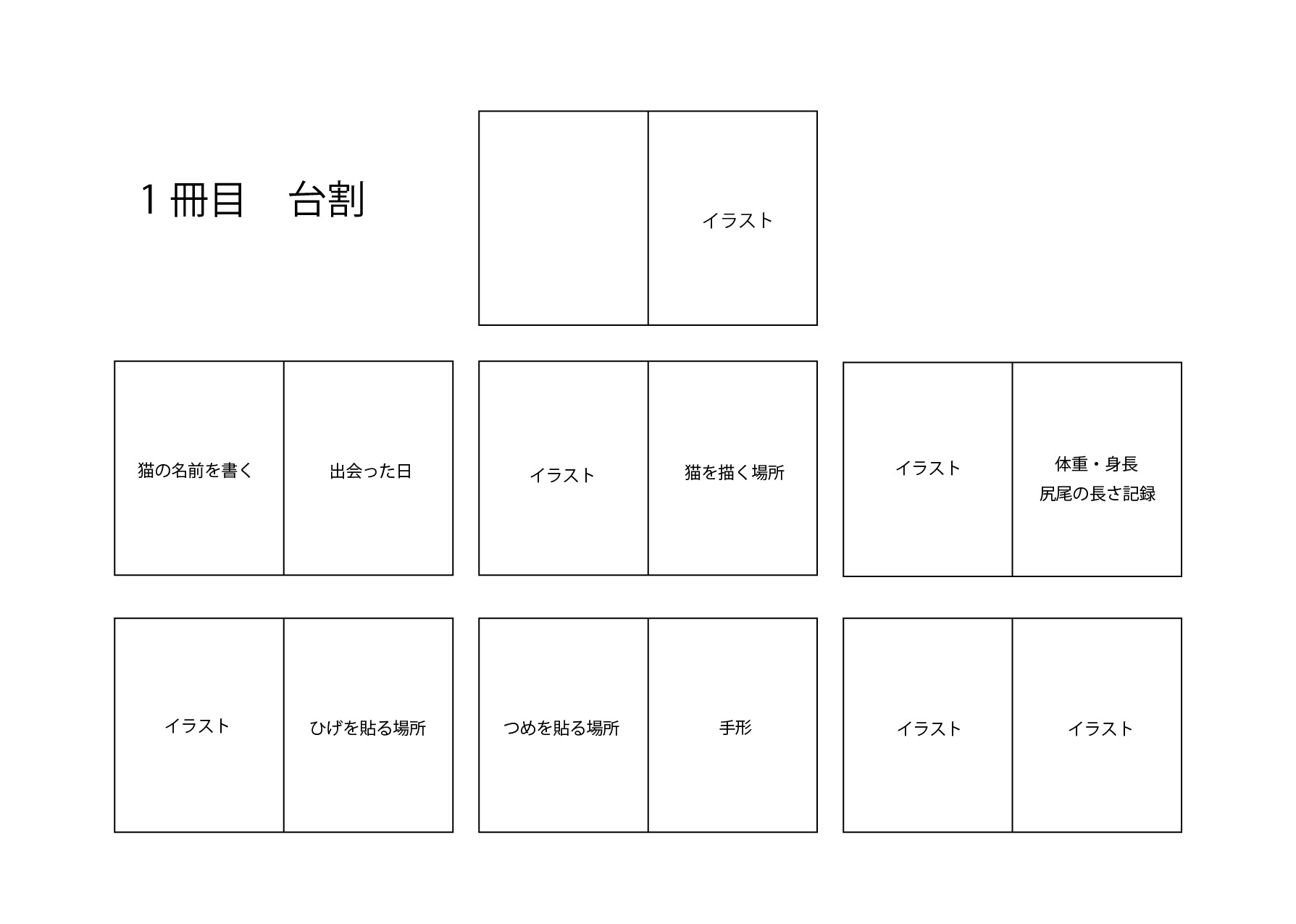 今まで二匹の猫とお別れしたことがあるが、その際写真の少なさや生きていた証というものが少ないことに後悔していた。ネットでも愛猫とのお別れの際に後悔をしている人が多くいるため、そうならないために猫との思い出を振り返られる一冊の本にまとめられるものを制作したいと思った。また、書き込み要素などを多く入れ、その猫について深く考える時間を作るものとしたい。