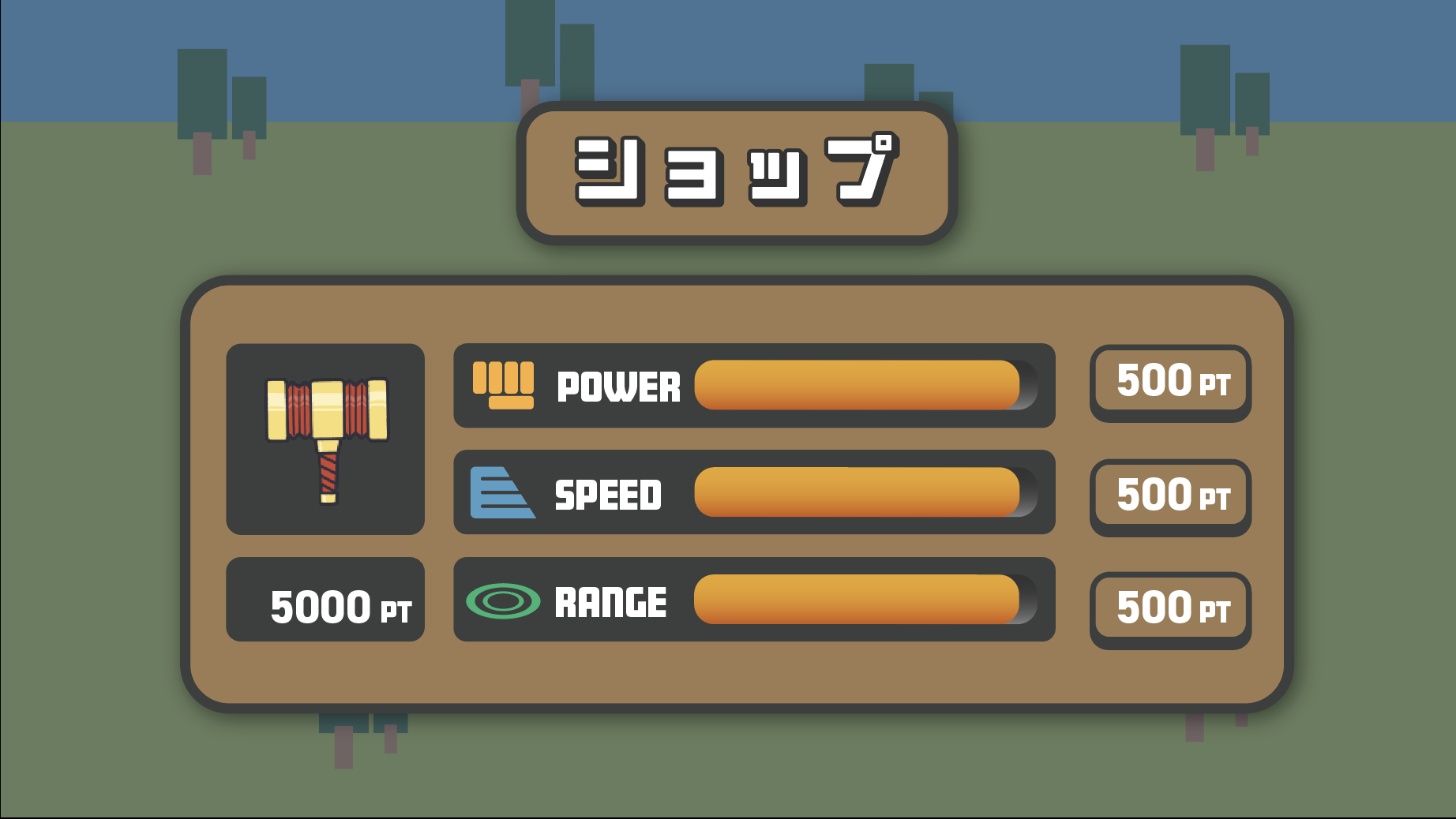 モグラ叩きに新たなシステムや要素を追加することを想定し、細かい演出などで爽快感を出し、直感的なUI・HUDでスムーズで快適なプレイ体験を目指す。