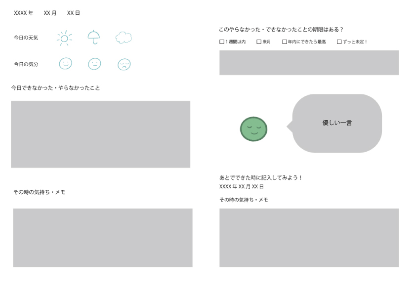 →「しなかったことで守れたもの/気づいたこと」などの反転の視点を加える欄も◎